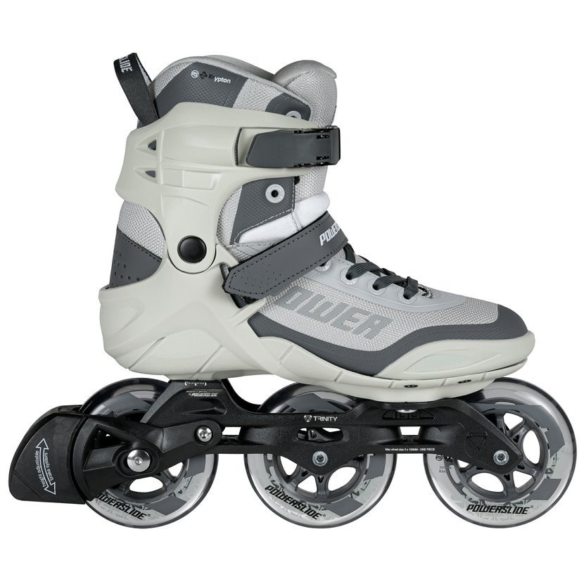 Powerslide Phuzion Krypton Gray 100 Trinity Inline-Skates - Modell von Skates für Anfänger und Fortgeschrittene, die Dreirad-Skates nutzen möchten und echten Komfort und einzigartigen Komfort suchen. 3 Rollschuhe, die sich durch hohen Komfort und Komfort auszeichnen Bequemlichkeit. Die Skates haben einen revolutionären Trinity-Rahmen mit Infinity 100 mm/83a-Rädern und WCD Abec 7-Lagern, der Stabilität und einfache Handhabung gewährleistet.