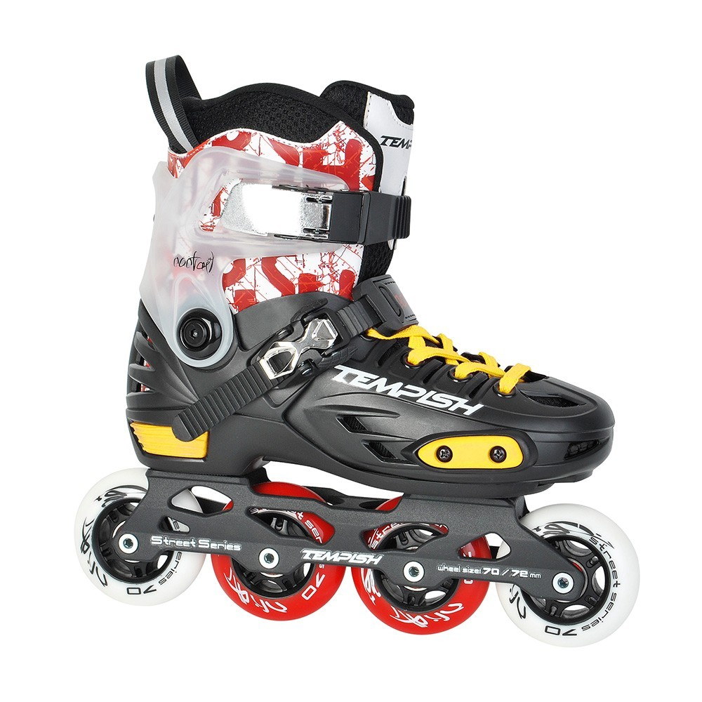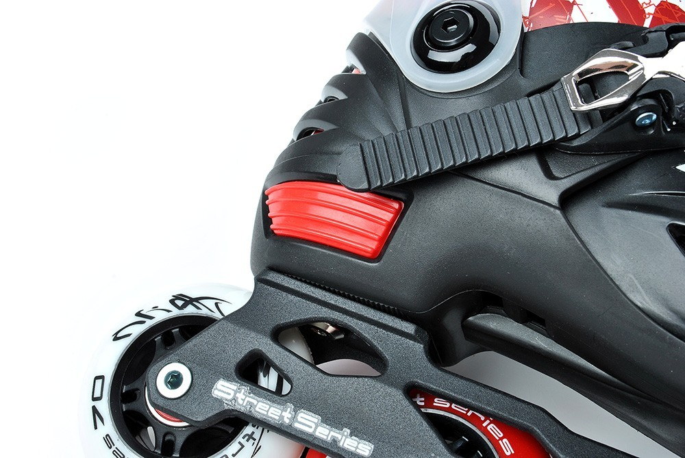 Kinder FREESTYL Stretch Skates COCTAIL VARIO sind für Sport- und Freizeitskaten konzipiert. ** Mittlere und hohe Belastung, geeignet für Anfänger und Fortgeschrittene. Skates verfügen über ein einfaches und praktisches Größenanpassungssystem mit einem Knopf an der Seite des Skeletts. ** Der Schuh kann auf 4 verschiedene Größen eingestellt werden. Das Kunststoffskelett des Skates ist sehr robust und bietet beim Skaten erhebliche Unterstützung. Der Innenschuh (Innenschuh) ist mäßig verstärkt und reich gepolstert. Der Spannriemen hat eine Mikroschnalle, die ein festes Festziehen und Sitzen des Fußes im Schuh gewährleistet.