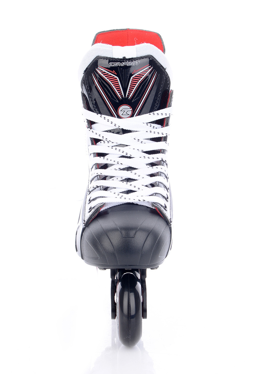 Das Skelett hat im Bereich der Spitzenringe eine variable Festigkeit, so dass es möglich ist, den Skate gemäß den Anforderungen jedes Hockeyspielers am Fuß festzuziehen. Die Rückseite des Schuhs ist sehr stark und bietet eine hohe Unterstützung für die Wade des Hockeyspielers. Der Skate hat ein bewährtes TEMPISH MESH-Chassis mit Senkschrauben, das entsprechend der Form der Sohle des VOLT-Skates modifiziert wurde (MESH ULTRA R).