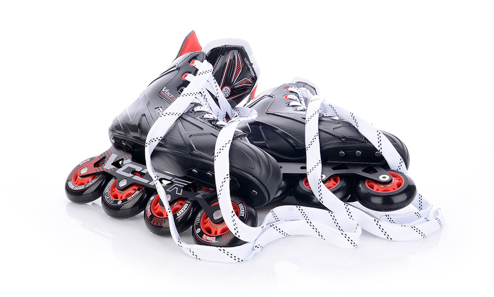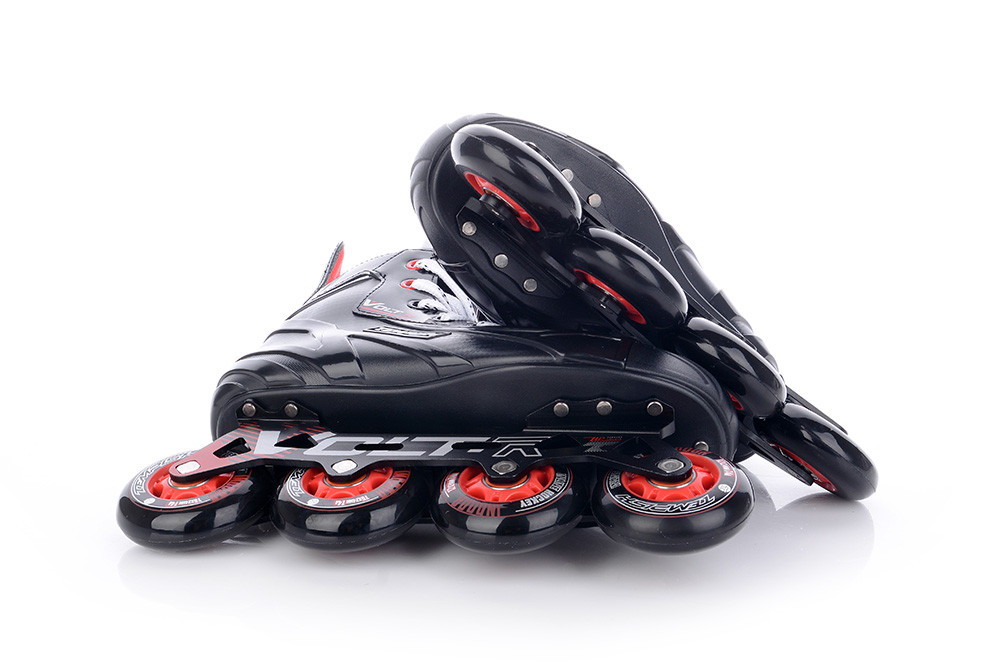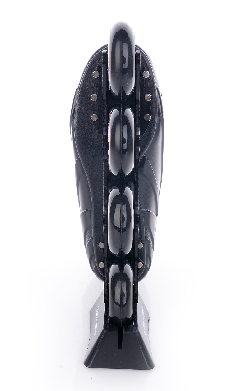 Schlittschuhe für Inline-Hockey in einer neuen revolutionären Konstruktion, dank derer es sehr stark und sehr leicht ist. Das gesamte Skelett des Schlittschuhs besteht aus einem Stück HDPE mit unterschiedlicher Dicke, je nach Bedarf an Festigkeit und Härte von Einzelteile.