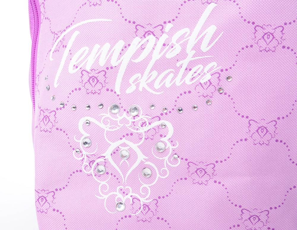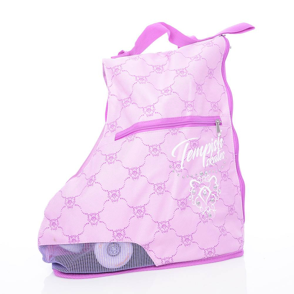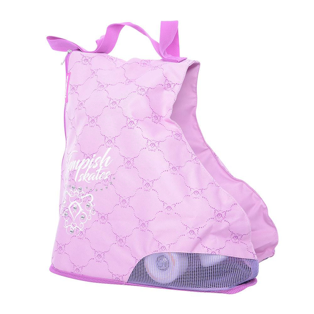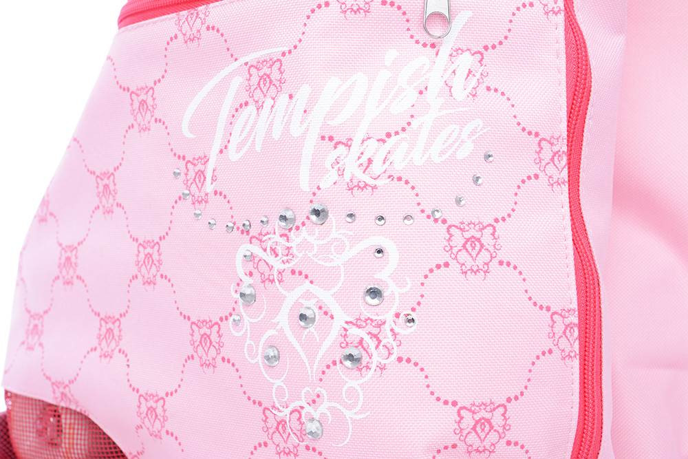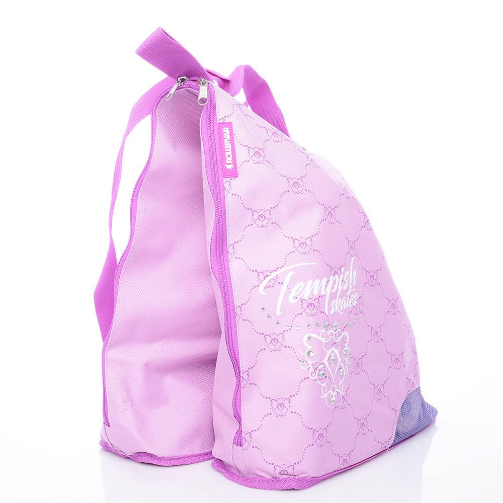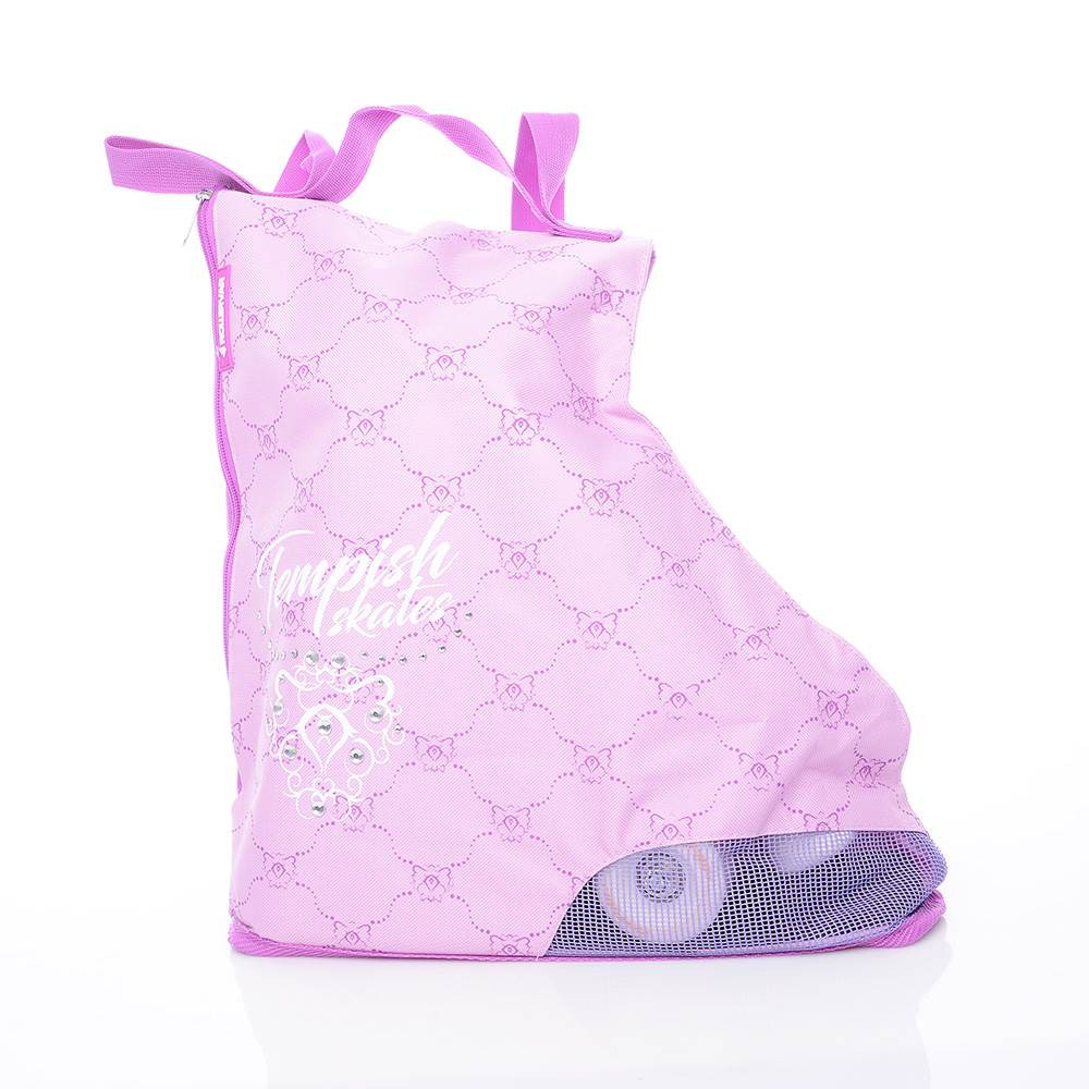 Universelle TAFFY-Tasche für Quad-, Inline- und Winter-Skates mit attraktivem Mädchendesign. Das Taschendesign ist mit einem Vollflächendruck, einem Gummilabel und vor allem glitzernden Steinen verziert, die in ein stilvolles Ornament eingelassen sind. Junior Size ist für Quad-Skates, Inline- und Winter-Skates für Kinder konzipiert. Die maximale Länge des Skate-Chassis beträgt 33 cm. Die Tasche verfügt über separate und belüftete Räume für jeden Skate. Separate separate Seitentasche für kleine Gegenstände (Handy, Schlüssel, Brieftasche usw.) Die Basis ist mit einer 2,5 mm dicken Kunststoffplatte verstärkt. Die Tasche ist mit einer Schlaufe zum Aufhängen, einer Schlaufe zum Halten in der Hand und einem Riemen zum Aufhängen an der Schulter ausgestattet.