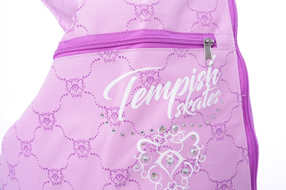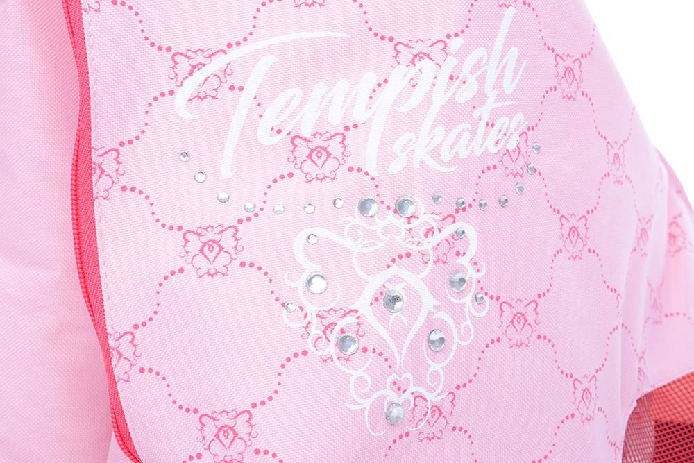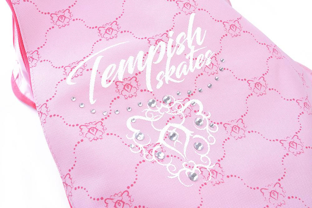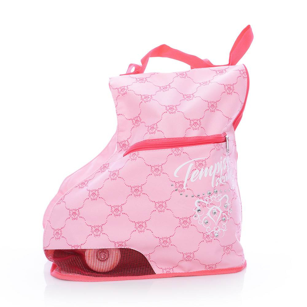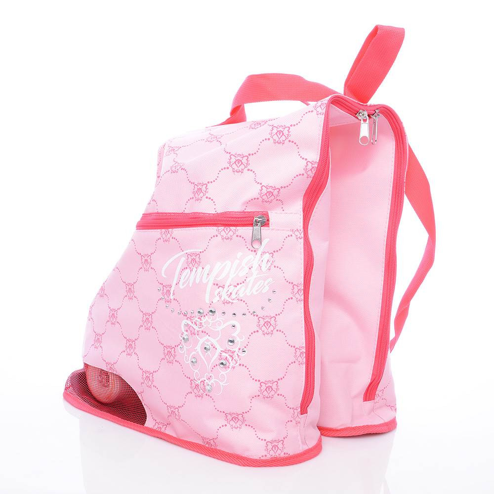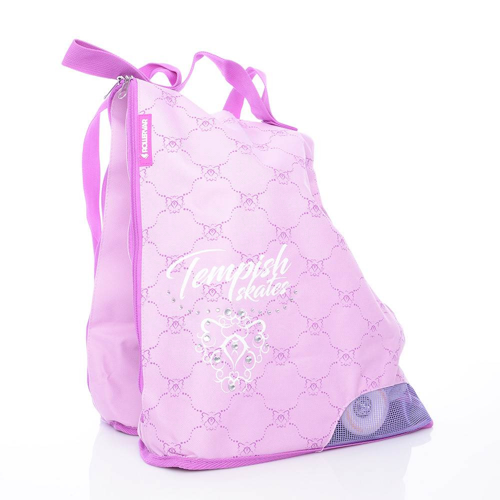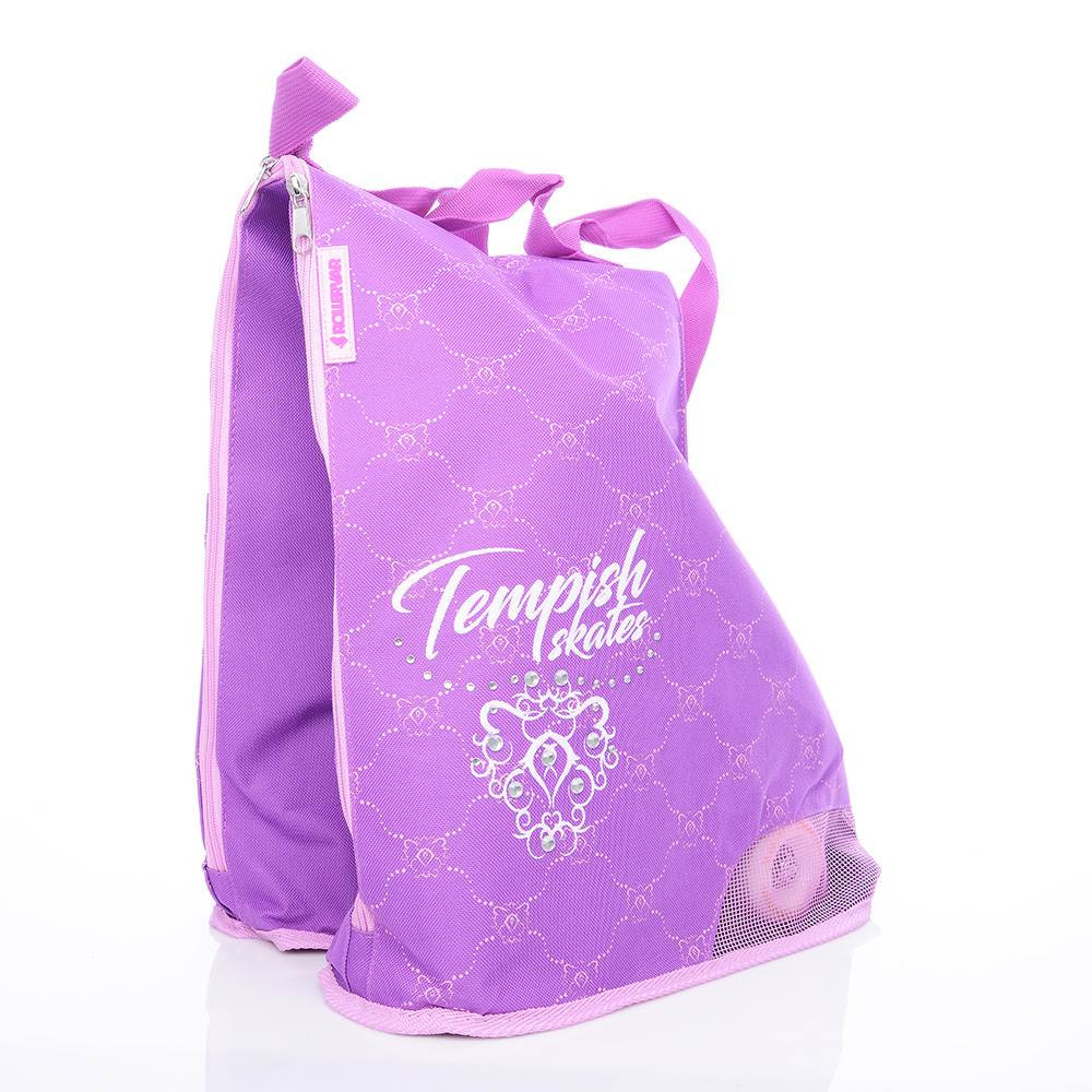 Universelle TAFFY-Tasche für Quad-, Inline- und Winter-Skates mit attraktivem Mädchendesign. Das Taschendesign ist mit einem Vollflächendruck, einem Gummilabel und vor allem glitzernden Steinen verziert, die in ein stilvolles Ornament eingelassen sind. Junior Size ist für Quad-Skates, Inline- und Winter-Skates für Kinder konzipiert. Die maximale Länge des Skate-Chassis beträgt 33 cm. Die Tasche verfügt über separate und belüftete Räume für jeden Skate. Separate separate Seitentasche für kleine Gegenstände (Handy, Schlüssel, Brieftasche usw.) Die Basis ist mit einer 2,5 mm dicken Kunststoffplatte verstärkt. Die Tasche ist mit einer Schlaufe zum Aufhängen, einer Schlaufe zum Halten in der Hand und einem Riemen zum Aufhängen an der Schulter ausgestattet.