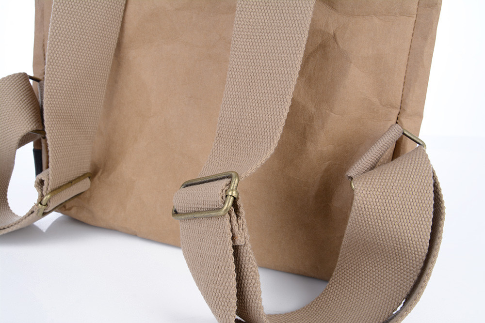 Rucksack aus dem TEMPISH ECO-MOVEMENT Projekt. Dank der Verwendung von waschbarem Papier konnte die Verwendung von Kunststoff für diesen Rucksack um 36% eingespart werden. Einige Kunststoffschnallen und -schnallen wurden auch durch Metallschnallen ersetzt. Die verwendeten Materialien erfüllen die Anforderungen OEKO-TEX: STANDARD 100. Das grundlegende Außenmaterial des Rucksacks ist wasserabweisend und abriebfest.