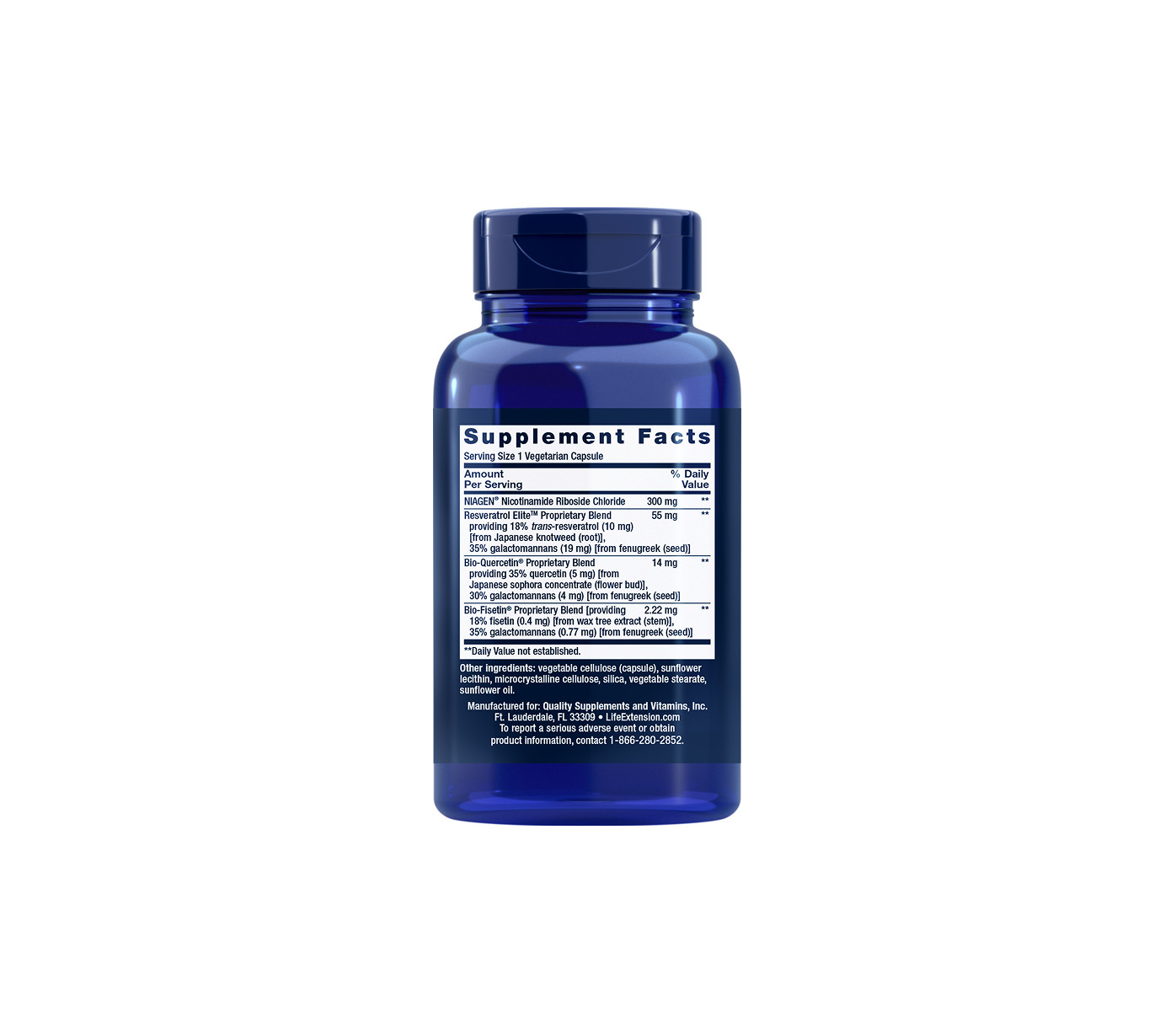 Life Extension NAD+ Cell Regenerator™ and Resveratrol Elite™ ist ein innovatives Nahrungsergänzungsmittel, das Folgendes kombiniert:
