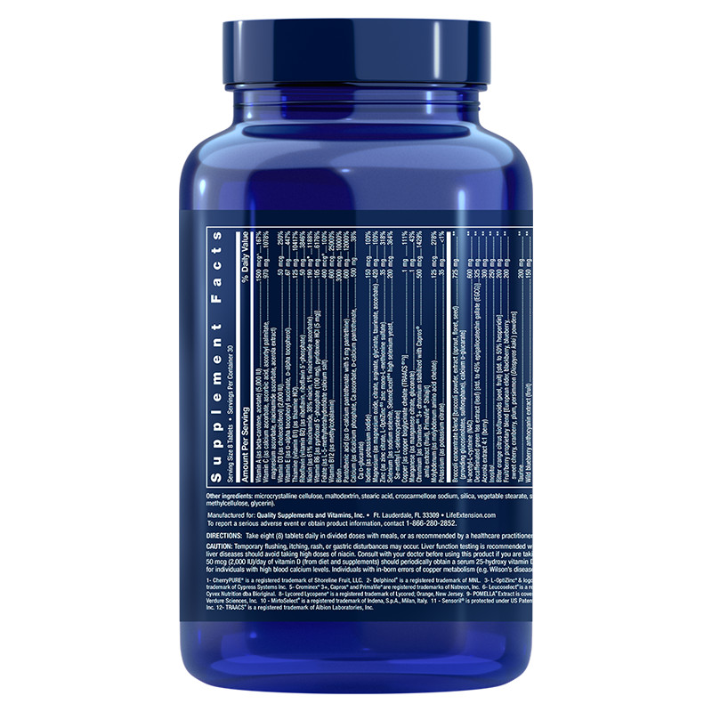 Vorübergehend können Hitzewallungen, Juckreiz, Hautausschlag oder Magenbeschwerden auftreten. Leberfunktionstests werden empfohlen, wenn Niacin täglich mehr als 500 mg eingenommen wird. Personen mit Gicht oder Lebererkrankungen sollten die Einnahme hoher Niacin-Dosen vermeiden. Konsultieren Sie Ihren Arzt, bevor Sie dieses Produkt verwenden, wenn Sie gerinnungshemmende Medikamente einnehmen. Personen, die mehr als 50 mcg (2000 IE) Vitamin D pro Tag (aus Nahrung und Nahrungsergänzungsmitteln) zu sich nehmen, sollten regelmäßig eine Serum-25-Hydroxy-Vitamin-D-Messung durchführen lassen. Eine Vitamin-D-Ergänzung wird für Personen mit hohem Kalziumspiegel im Blut nicht empfohlen. Personen mit angeborenen Störungen des Kupferstoffwechsels (z. B. Morbus Wilson) sollten die tägliche, chronische Anwendung dieses Produkts vermeiden.