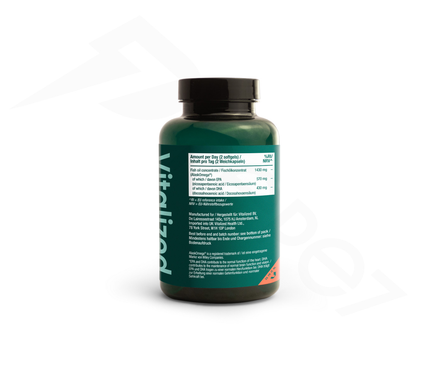 Vitalized Omega-3 Elite ist ein Nahrungsergänzungsmittel mit Omega-3-Fettsäuren EPA und DHA. Es enthält ein Fischölkonzentrat aus Alaska Pollock.